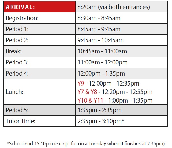 Times of the School Day